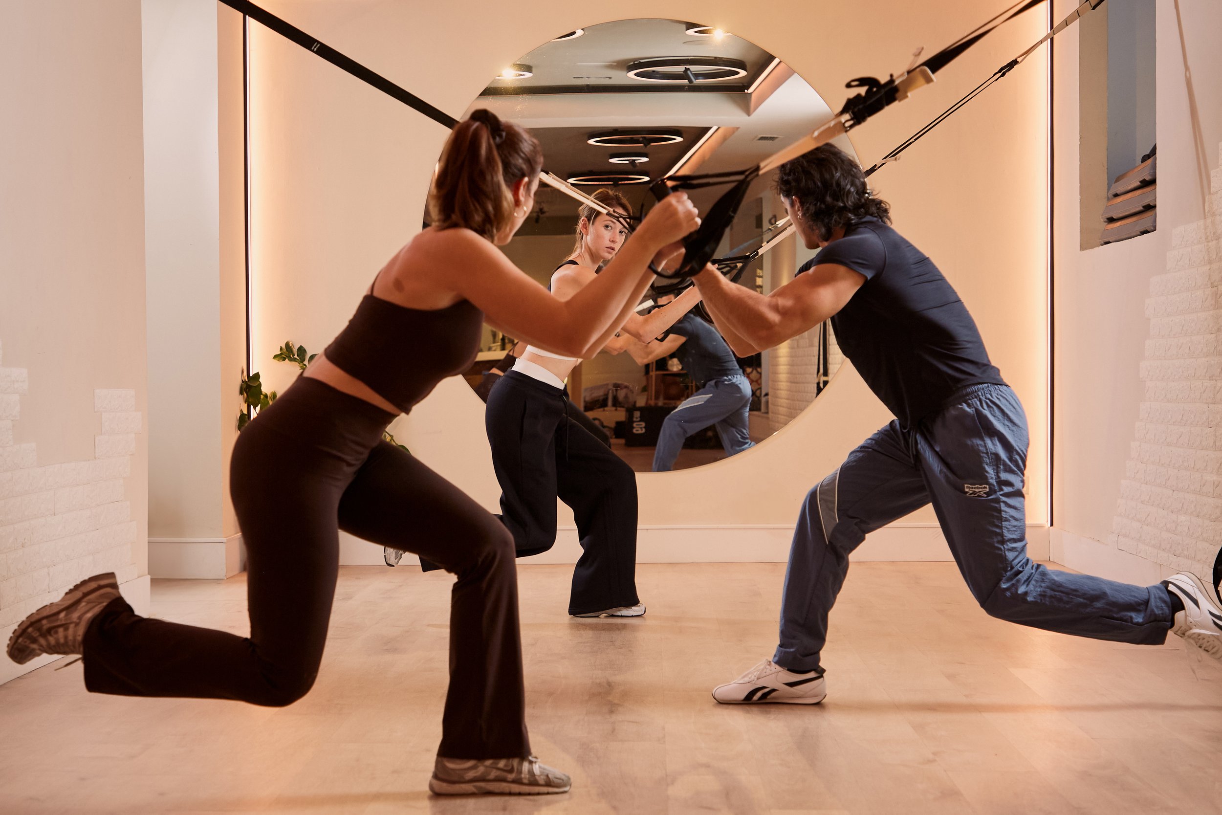 Desafía la gravedad con nuestras clases de TRX. Este entrenamiento en suspensión utiliza tu propio peso corporal para desarrollar fuerza, equilibrio, flexibilidad y estabilidad en todo el cuerpo. Vas a sudar la gota gorda pero con una sonrisa, te lo aseguramos.